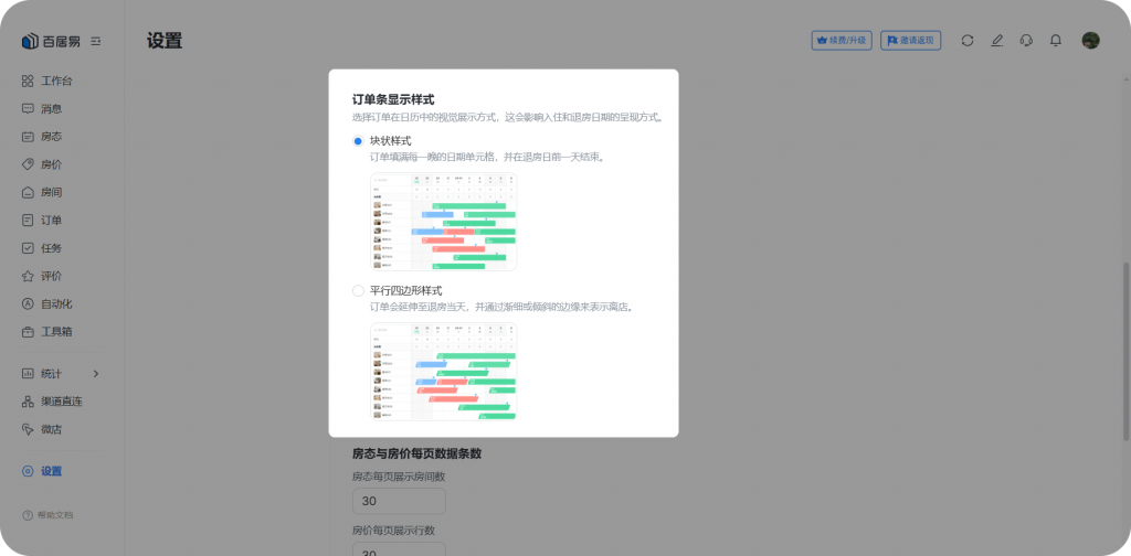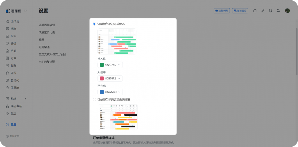 - 日历可视化优化:可自定义房态页订单条的显示颜色和样式。